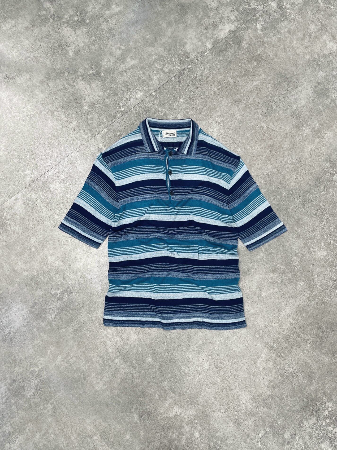 MISSONI "Early 90s Rayon Striped Knit Polo" made in Italy