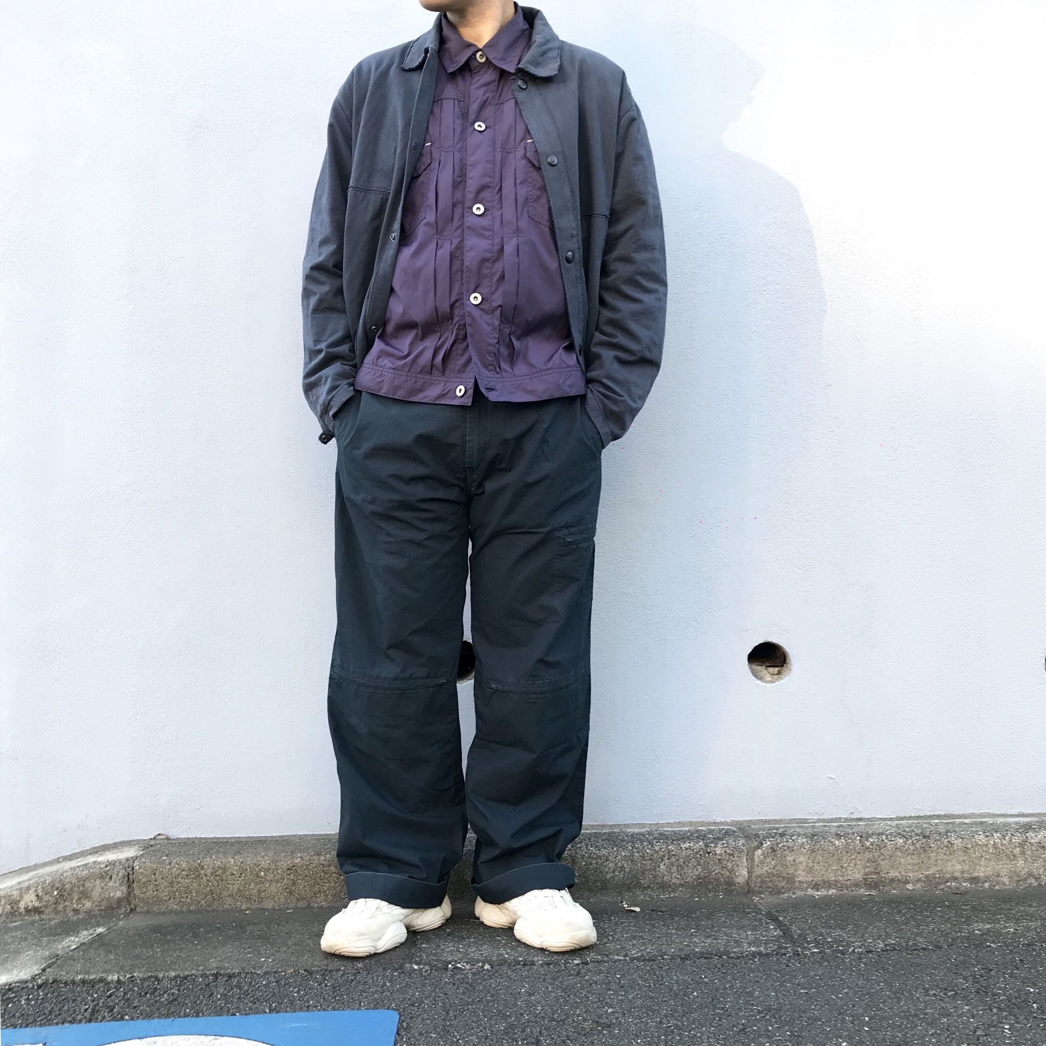 サイドや股ぐりなどはワークパンツに見られるトリプルステッチで縫製され強度もありパッカリングやアタリが出やすい仕様で薄手のブロード素材とのギャップがギャルソンなどのデザイナーズブランドを彷彿させるディテールです